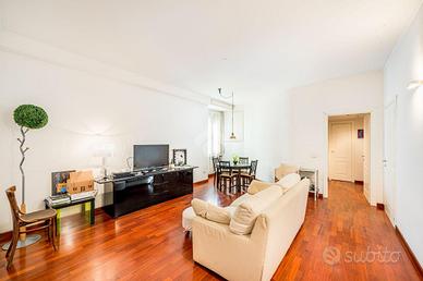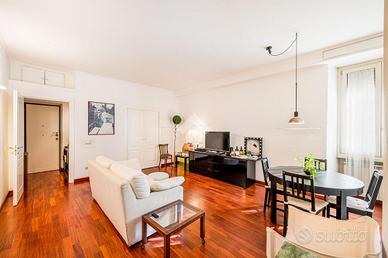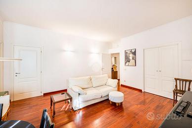 93 mq, via A. Riboty, trilocale, in stabile ristrutturato nelle parti comuni di inizi anni '40, posto al piamo rialzato (I catastale) composto da: ingresso, ampio soggiorno, cucinotto, due camere da letto, bagno. Ristrutturato. Predisposizione aria condizionata. Tripla esposizione. Luminoso. Spazio condominiale per parcheggiare una biciletta. Terrazzo condominiale vista San Pietro.