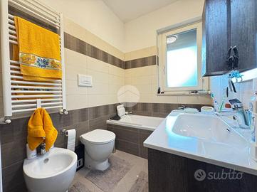 Proponiamo in vendita raffinato trilocale di 79 mq, situato in uno stabile di recente costruzione nel moderno quartiere residenziale di Fonte Laurentina. L'immobile, rifinito da un'elegante pavimentazione in parquet di rovere che dona calore e continuità agli ambienti, si apre su un'ampia e luminosa zona living con cucina open space. Qui, i faretti a soffitto esaltano ulteriormente le finiture, creando un'atmosfera moderna e accogliente. Proseguendo, si accede alla zona notte, ben distribuita, composta da due camere da letto e due bagni: uno finestrato con vasca e l'altro dotato di box doccia. Lo spazio esterno è caratterizzato da un terrazzo di generosa metratura, accessibile sia dalla zona giorno che dalla zona notte, che, grazie al piano alto e alla doppia esposizione sud-est, assicura un'eccellente luminosità e un piacevole affaccio. Il terrazzo è inoltre arricchito da un'armadiatura da esterno su misura, in alluminio e in tinta grigia, ideale per ottimizzare gli spazi. L'elevato livello di comfort e la modernità dello stabile si riflettono nell'alta classe energetica dell'edificio, supportata dalla presenza di pannelli solari e termici, riscaldamento a pavimento e da dotazioni tecnologiche quali serrande elettriche e impianto di climatizzazione in tutti gli ambienti. Completano la proprietà un'ampia e funzionale cantina di 10mq e due posti auto coperti, di cui uno predisposto per la ricarica di veicoli elettrici. Le presenti informazioni e planimetrie sono meramente indicative e non costituiscono elementi contrattuali. Per info e/o appuntamenti anche via WhatsApp al SERVIZI PER IL CLIENTE: - Valutazione immobiliare scritta gratuita e senza impegno; - Vendita e/o locazioni di immobili nel quartiere di Fonte Laurentina, Castel di Leva, Divino Amore, Colle Parnaso ed Eur Papillo; - Pratica e consulenza affrancazione; - Preparazione e stesura di contratti di locazione; - Preparazione e stesura di contratti preliminari di compravendita