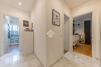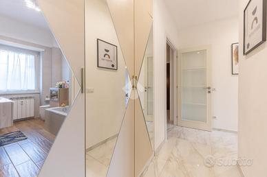 Nuovo Salario - Via Giulio Rubini In una tranquilla zona residenziale ricca di verde e parchi si trova un trilocale di 100 mq completamente ristrutturato, situato al piano primo di una piccola palazzina in cortina. L'immobile si presenta in condizioni impeccabili, pronto da abitare, con finiture moderne e di qualità, ed è dotato di posto auto coperto e cantina di pertinenza. Entrando ci accoglie un ingresso ampio e raffinato con armadiature su misura, che introduce a un disimpegno studiato per garantire massima funzionalità e ordine. La zona giorno si distingue per un luminoso salone con accesso al balcone e una cucina abitabile separata, anch'essa con balcone, arricchita da un comodo locale lavanderia, pensata per coniugare indipendenza degli spazi ed eleganza nella convivialità. La zona notte si sviluppa in due ampie camere da letto, tra cui una raffinata matrimoniale con accesso al balcone, che regala luce naturale e piacevoli affacci. Completano la zona due bagni finestrati, progettati per offrire il massimo del comfort e della funzionalità. L'appartamento è stato dotato di tutti gli optional più richiesti: tapparelle elettriche, zanzariere, grate di sicurezza, impianto di condizionamento, porta blindata, infissi in alluminio con doppio vetro, punti luce LED regolabili, impianto di allarme e conformità totale di tutti gli impianti. Una soluzione chiavi in mano, luminosa, silenziosa e perfettamente funzionale in una delle zone più verdi del quartiere. Per richiedere maggiori informazioni contattate la nostra agenzia ai seguenti recapiti: Tel. Cell. Ogni agenzia ha un proprio titolare ed è autonoma - Le presenti informazioni non costituiscono elemento contrattuale. Per richiedere maggiori informazioni contattate la nostra agenzia ai seguenti recapiti: Tel. Cell. Ogni agenzia ha un proprio titolare ed è autonoma - Le presenti informazioni non costituiscono elemento contrattuale.