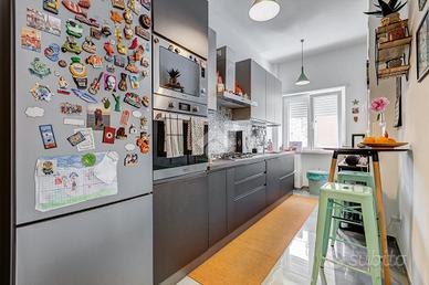 Ampio trilocale completamente ristrutturato - Ottima opportunità Nel cuore del quartiere, in posizione strategica e servitissima, proponiamo in vendita un appartamento di 92 mq completamente ristrutturato nel 2020 situato al terzo piano di uno stabile in cortina ristrutturato con intervento Superbonus 110%. Internamente l'appartamento è così composto: ingresso accogliente, ampio soggiorno con uscita sul balcone, due spaziose camere matrimoniali, cucina abitabile, bagno e ripostiglio. Completa la proprietà una comoda cantina di circa 5 mq. Grazie agli interventi al palazzo e all'appartamento la classe energetica è A, permettendo così l'accesso alle agevolazioni del mutuo green. Inoltre l'esposizione a sud garantisce luminosità durante tutto l'arco della giornata. La posizione è uno dei veri valori aggiunti: l'immobile si trova nel centro del quartiere, con tutti i principali servizi a pochi passi, tra cui negozi, supermercati, scuole, mezzi pubblici e aree verdi.