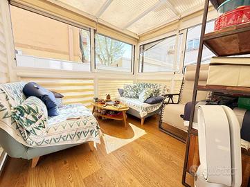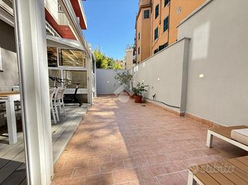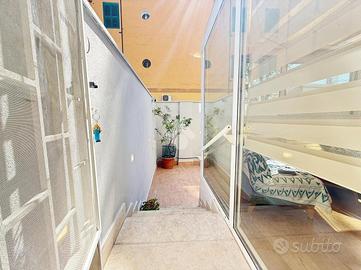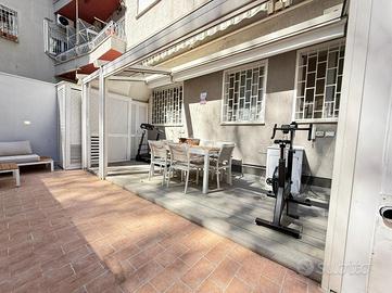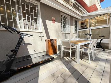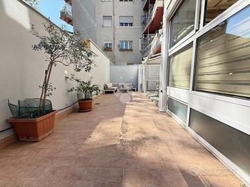 Via Pandosia - ad. piazza Epiro, proponiamo in esclusiva un trilocale di 70 mq comm. situato al piano terra di un edificio dotato di ascensore. L'appartamento si compone di ingresso, soggiorno con angolo cottura, due camere da letto, bagno, serra bioclimatica e terrazzo di 45 mq parzialmente coperto da pergotenda automatizzata con pannelli ad alta rifrazione. Nella zona giorno è inoltre presente un comodo soppalco. L'immobile è stato completamente ristrutturato con finiture di pregio e rinnovato nell'impiantistica. L'impianto di condizionamento è di ultima generazione. La zona è ben servita da mezzi pubblici e servizi, garantendo comodità e facilità di spostamento. In soli dieci min. a piedi è possibile raggiungere le fermate della linea metro A/C di San Giovanni; della linea C di Porta Metronia a soli pochi passi dallo stabile. L'immobile gode della vicinanza a Porta Metronia e alle Mura Aureliane, dove poter trascorrere piacevolissime giornate immerse nel verde, ma allo stesso tempo è posto in posizione strategica per chi non vuole fare a meno della sua centralità, infatti una passeggiata di pochi minuti vi condurrà alle terme di caracalla, mentre, attraversando Porta Metronia, percorrendo via celimontana raggiungerete il colosseo, i fori imperiali e le innumerevoli bellezze storiche della capitale.