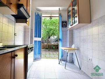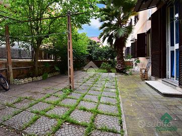 In caratteristico Lotto degli anni 40 ristrutturato, proponiamo la vendita di un appartamento al piano terra con ampio giardino. L'immobile, servito da un' entrata indipendente, è attualmente composto da : ingresso, soggiorno, cucina, due camere da letto, bagno. In un ulteriore stanza, adiacente ad una camera, troviamo un angolo cottura ed un bagno. L' ampio giardino perimetriale permette una vivibilità esterna. L'impianto tradizionale dell'appartamento può essere risdistribuito creando nuovi ambienti con l'impiego degli spazi in ambito più moderno, potendo realizzare una zona giorno armoniosa con il salone e la cucina, e una zona notte e servizi, con 3 camere da letto e 2 bagni. Possibilità di parcheggiare una macchina nell'area condominiale.