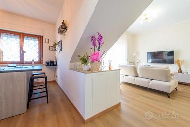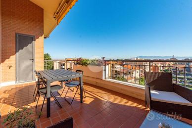 BORGHESIANA- APPARTAMENTO ATTICO CON TERRAZZO E POSTO AUTO. LATO VERMICINO Proponiamo in vendita in zona Borghesiana, lato Vermicino un elegante appartamento di recente costruzione, situato all'ultimo piano di uno stabile moderno servito da ascensore. L'immobile si sviluppa su due livelli. Al piano principale troviamo una luminosa zona giorno composta da soggiorno con cucina a vista, oltre a un bagno finestrato dotato di vasca. Dal soggiorno si accede direttamente a un comodo terrazzo di proprietà, ideale per momenti di relax all'aperto e caratterizzato da una piacevole vista libera. Il piano superiore ospita la zona notte, composta da due camere da letto e un secondo bagno finestrato con doccia. La soluzione viene venduta completa di arredo, qualora di interesse, e dispone inoltre di un posto auto di pertinenza. La zona di Borghesiana si trova a ridosso di Via Casilina, a pochi km dal Grande Raccordo Anulare e alle uscite delle autostrade A1 (Roma-Napoli) e A24 (Roma-L'Aquila). Ottimi sono i collegamenti con la rete pubblica, grazie alla fermata della Metro C 'Borghesiana' e alle diverse linee Atac (come 055, 051, 107 e 045) e Cotral. Vuoi mettere in vendita il tuo immobile ma non sai a quanto? Sei curioso di sapere se oggi il suo valore è aumentato, diminuito o è rimasto invariato rispetto a quando l'hai acquistato? Una risposta precisa la puoi avere solo con una valutazione immobiliare, che Tecnorete Borghesiana oggi ti offre a titolo gratuito, contattaci al numero oppure al
