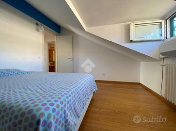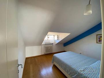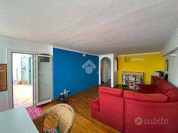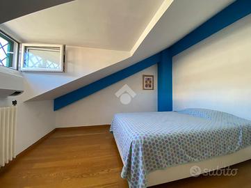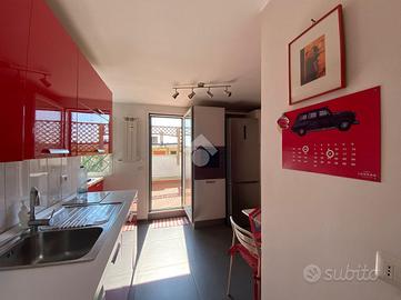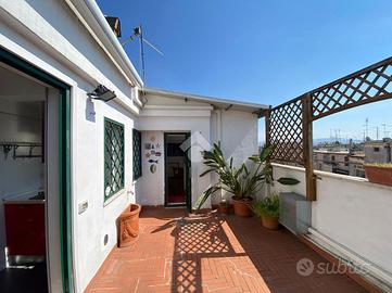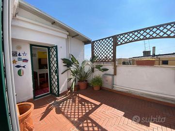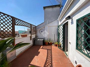 Via delle Cave, angolo Via Appia Nuova - Superattico con terrazzo in stabile signorile In stabile signorile con ascensore, recentemente ammodernato con installazione di pompe dell'acqua per garantire ottima pressione anche ai piani alti, proponiamo in vendita un superattico di 90 mq catastali, ristrutturato nel 2011 e in ottimo stato, pronto da abitare. L'immobile si distingue per la doppia esposizione che assicura luminosità durante tutto il giorno e per un terrazzo di circa 15 mq, accessibile da soggiorno e cucina abitabile, dotato di tenda elettrica installata nel 2023. L'affaccio su cortile con vista sui Castelli Romani garantisce privacy e tranquillità. Gli ambienti interni sono caldi e accoglienti, con tonalità studiate per conferire carattere e unicità all'abitazione, valorizzando ogni spazio con equilibrio e personalità. Zona giorno: doppio soggiorno con parquet, ampio e luminoso, con accesso diretto al terrazzo, ideale per momenti di relax e convivialità. Zona cucina: abitabile e funzionale, collegata direttamente al terrazzo, perfetta per la vita quotidiana e per pranzi e cene all'aperto. Zona notte: due camere mansardate intime e suggestive, con altezze variabili che creano un'atmosfera accogliente e distintiva. Le camere sono rifinite con parquet in rovere spazzolato "Tarkett Viva Line" su materassino fonoassorbente, adatte anche come studio o area relax. Bagno finestrato con finiture di pregio: mosaici in gres porcellanato smaltato, piastrelle CeSi, sanitari sospesi Catalano e lavabo d'appoggio Art Ceram, che uniscono estetica e funzionalità. Dotazioni: riscaldamento centralizzato semiautonomo con valvole e contabilizzatori, quattro climatizzatori caldo/freddo (uno Samsung Windfree con controllo da remoto), infissi con doppi vetri e acqua calda tramite caldaia Rinnai. Soluzione ideale per chi cerca un attico elegante, silenzioso e pronto da vivere, adatto anche come abitazione di rappresentanza. L'immobile si trova nel quartiere Colli Albani -