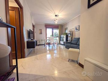 Proponiamo in vendita un elegante trilocale situato al terzo piano di una palazzina ben tenuta, in posizione strategica su una via principale ricca di tutti i servizi. L'appartamento si presenta in ottime condizioni grazie a una recente ristrutturazione che ha interessato sia gli ambienti interni sia gli impianti, garantendo comfort e funzionalità. L'ingresso conduce a un luminoso soggiorno, accogliente e ben distribuito, affiancato da una cucina separata che offre praticità e indipendenza negli spazi. La zona notte è composta da una spaziosa camera matrimoniale e da una cameretta, entrambe dotate di accesso diretto al balcone, elemento che dona ariosità e continuità tra interno ed esterno. L'immobile dispone inoltre di doppi servizi: uno finestrato con vasca, ideale per momenti di relax, e un secondo bagno con doccia, perfetto per le esigenze quotidiane. Completano la proprietà ulteriori balconi, grate di sicurezza installate su tutte le finestre, finiture curate con porte di pregio e un comodo box auto. La posizione, su una via principale ben servita, consente di avere a portata di mano negozi, mezzi pubblici e tutte le comodità necessarie, rendendo questa soluzione ideale per famiglie o per chi desidera vivere in un contesto pratico senza rinunciare alla qualità degli spazi. L'immobile non è soggetto a nessun tipo di problematica di natura statica o strutturale e non necessita di monitaraggi.