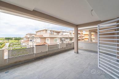 ULTIME DISPONIBILITÀ - PIANO PRIMO E SECONDO All'interno di un raffinato Residence esclusivo di nuova realizzazione, dove estetica, innovazione e sostenibilità si fondono in perfetto equilibrio, proponiamo in vendita residenze esclusive pensate per un pubblico esigente e contemporaneo. Linee architettoniche eleganti, materiali di altissima gamma e tecnologie all'avanguardia definiscono un progetto abitativo unico: efficienza energetica di ultima generazione, pannelli fotovoltaici, isolamento termo-acustico evoluto, climatizzazione integrata con pompa di calore e sistema domotico "Smart Connect", affiancati da avanzati dispositivi di sicurezza. Gli appartamenti, situati ai piani alti e serviti da ascensore, si sviluppano su un unico livello e si distinguono per la luminosità degli ambienti e la perfetta distribuzione degli spazi. L'ampia zona living, con cucina a vista, si apre su un prestigioso terrazzo di 25 mq. La zona notte accoglie una suite padronale con cabina armadio e bagno en suite finestrato, una seconda camera ed un ulteriore bagno. Il Residence è arricchito da un'esclusiva oasi verde privata con Club House e campo da padel, pensata per offrire momenti di benessere, relax e socialità in un contesto riservato. Ogni unità immobiliare sarà in CLASSE ENERGETICA A4 ed è fornita di IMPIANTO COMPLETO ed AUTONOMO così costituito: * L'impianto Elettrico BTICINO sarà di ultima generazione con l'applicazione del nuovo sistema Smart Connect con gestione, anche da remoto, del comando luci, avvolgibili, gestione carichi, ecc. * Il sistema Antifurto, a protezione dell'unità immobiliare, è costituito da una centrale che gestisce il contatto magnetico sul portone d'ingresso, dai rilevatori volumetrici esterni posizionati sulle finestre della serra solare e la predisposizione dei sensori volumetrici per un ampliamento dell'intero sistema * Impianto Videocitofono a colori * Impianto satellitare e terrestre * Impianto di Riscaldamento con pavimento Radiante