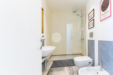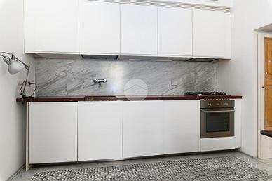 All'interno del centrale quartiere di San Lorenzo, precisamente nella caratteristica e richiesta via dei Campani, disponiamo di un comodo e luminoso trilocale di 83mq ca. Sito al 4° piano di uno stabile di inizio '900, si presenta così composto: ingresso su una graziosa zona giorno dotata di funzionale angolo cottura, due comode camere da letto, doppi servizi; completa la proprietà un balcone verandato che dona luce e ariosità. La soluzione si presenta finemente RISTRUTTURATA ed è dotata di ogni tipo di comfort tra cui: porta d'ingresso blindata, impianto di riscaldamento e acqua calda sanitaria con caldaia autonoma a gas, impianto di climatizzazione estiva/invernale canalizzato in tutti gli ambienti, infissi in doppio vetro che migliorano significativamente l'isolamento termico e acustico; tra i TRATTI DISTINTIVI vi sono sicuramente il pavimento moderno in resina, le armadiature su misura, le porte realizzate con il riuso degli scuri delle finestre, i marmi policromi e la predisposizione all'istallazione di un eventuale camino. L'immobile viene venduto completo d'arredo e elettrodomestici. La centralità della posizione consente di raggiungere facilmente i principali servizi e mezzi pubblici, quali la Stazione Termini e il capolinea degli autobus di piazzale del Verano; inoltre la vicinanza all'Università La Sapienza di Roma e al Policlinico Umberto I rende la soluzione ottima anche per uso investimento.