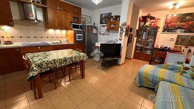 appartamento posto in un complesso residenziale composto da zona living con cucina a vista due camere disimpegno un ripostiglio e bagno con ampio terrazzo vivibile completano la proprietà un'ampia cantina e un posto auto scoperto di propietà.