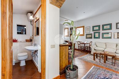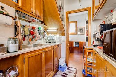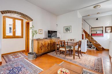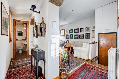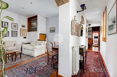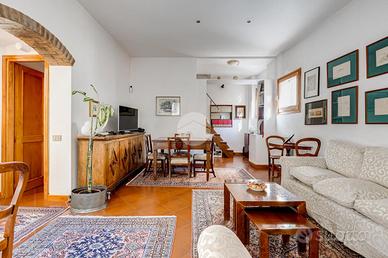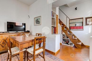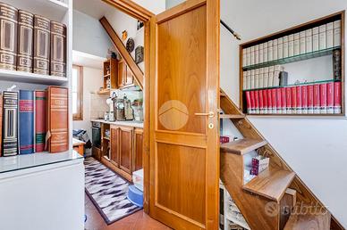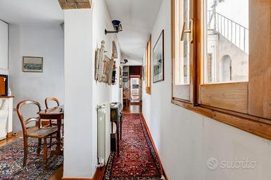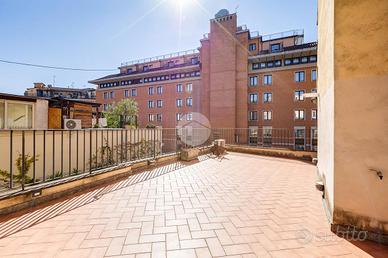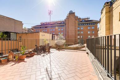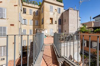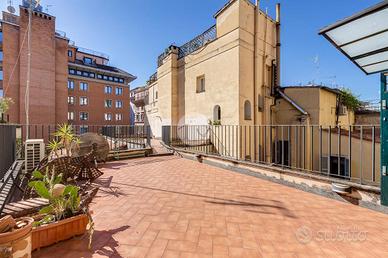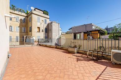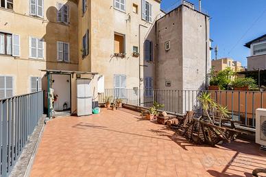 In via Leonina, in corrispondenza della scenografica scalinata dei Borgia, proponiamo in vendita un esclusivo ATTICO sito al quarto piano di un curato stabile d'epoca, NON DOTATO DI ASCENSORE, con TERRAZZINO A LIVELLO ED UNO SPLENDIDO TERRAZZO DI 100 MQ al piano sovrastante. L'immobile, di 118 metri quadri catastali, è disposto come un comodo trilocale: Ci da il benvenuto in casa un grande salone centrale: un ambiente di indiscutibile fascino impreziosito da un' impareggiabile luminosità donata dalla tripla esposizione. È il cuore della casa, un open space pensato per essere uno spazio versatile, accogliente e funzionale, ideale per i momenti di relax, ma anche uno snodo centrale da cui si accede alla grande terrazza e ai diversi ambienti della casa. Troviamo subito un servizio per gli ospiti poi, sulla sinistra, un assolato ballatoio ci conduce a quello che ora si presenta come un elegante studio arredato con librerie progettate su misura; l'affaccio sui cortili interni garantisce la giusta tranquillità per lavorare in smart working. Pur essendo un ambiente unico e aperto, può essere separato dagli altri spazi con arredi mobili o con una porta se si ha necessità di una camera in più. La zona notte è introdotta da un disimpegno corredato di indispensabili armadiature a muro ed è costituita da un'ampia camera matrimoniale, con bagno padronale annesso, con un TERRAZZINO vivibile, perfetto per fare colazione, al risveglio, con una meravigliosa vista sulla storica scalinata dei Borgia. L'immobile è termoautonomo, dotato di impianto di condizionamento e di sistema di allarme "verisure". Gli infissi sono in legno doppiovetro, con bellissimi scuri in legno sugli affacci interni. La pavimentazione in gres, nei toni del cotto/mattone, ben si sposa con alcuni elementi rustici della casa ( come i mattoni a vista sugli archetti che danno accesso al ballatoio), inoltre è elemento di continuità su tutti gli ambienti, una scelta di design che offre coesione visiva, ampliame