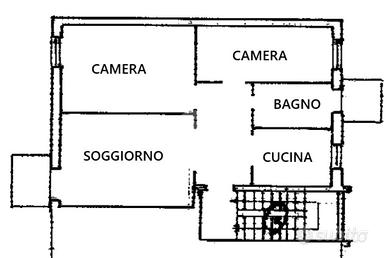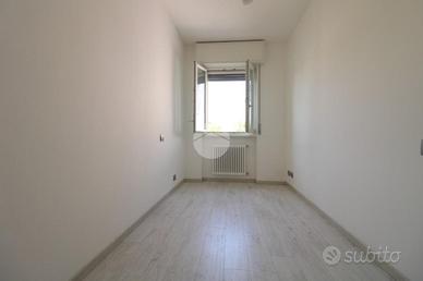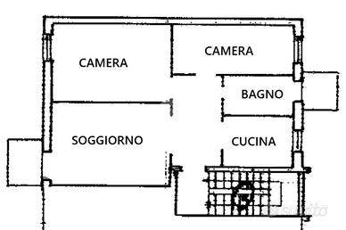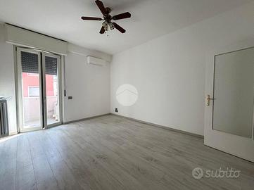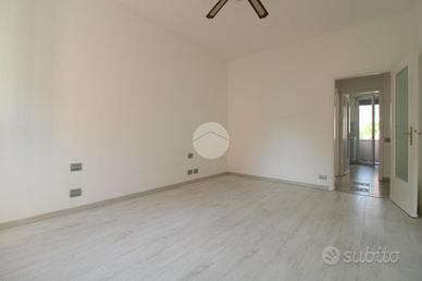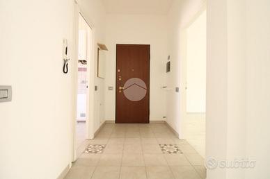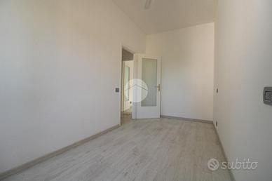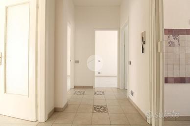 L'ingresso si apre su un pratico disimpegno, da cui si accede alla cucina separata, luminosa e funzionale. L'ampio soggiorno, servito da un balcone, rappresenta il cuore della zona giorno. La zona notte comprende una spaziosa camera matrimoniale, una seconda camera ideale come cameretta o studio, e un bagno finestrato con vasca, anch'esso servito da un secondo balcone.