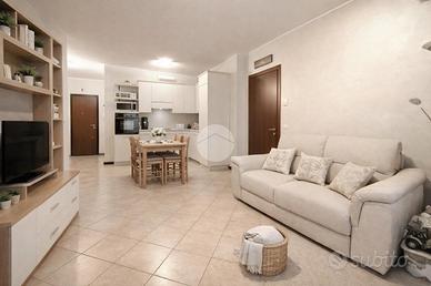 Proponiamo in vendita un elegante appartamento trilocale situato al secondo piano di una palazzina recente e ben mantenuta, servita da ascensore. L'ingresso, comodo e armadiato, conduce a una luminosa zona giorno con cucina e soggiorno in open space, affacciata su un balcone vivibile che garantisce ottima luminosità naturale e uno spazio esterno ideale per momenti di relax. Un funzionale disimpegno separa la zona giorno dalla zona notte, composta da una pratica lavanderia/ripostiglio, un bagno finestrato di generose dimensioni dotato di vasca, una spaziosa camera matrimoniale con accesso a un balcone dedicato e una cameretta. L'appartamento è completo di aria condizionata, videocitofono e si presenta in ottime condizioni, pronto per essere abitato senza necessità di interventi di ristrutturazione. Completa la proprietà un box singolo. Soluzione ideale per chi cerca comfort, funzionalità e praticità, situata in una zona comoda e ben collegata di Romano di Lombardia, dalla quale è possibile raggiungere rapidamente il centro cittadino e la stazione ferroviaria.