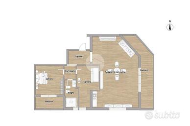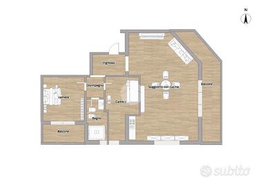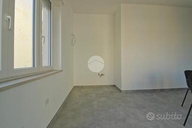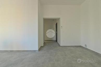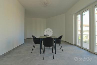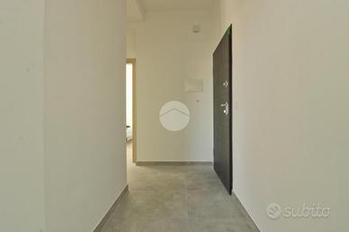 L'immobile si apre su un ingresso che conduce a un ampio soggiorno con cucina a vista, affacciato su un comodo balcone esposto a nord. Dall'ingresso, un piccolo disimpegno porta alle due camere da letto: una singola e una matrimoniale, quest'ultima con accesso a un balcone rivolto a est, oltre a un bagno.