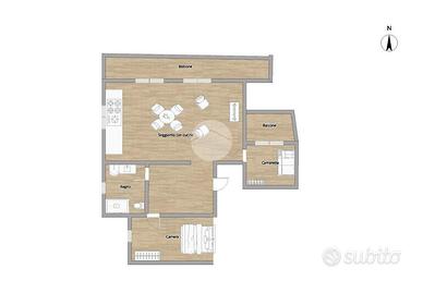 L'immobile si compone di tre locali, offrendo spazi ben distribuiti e luminosi. La zona giorno presenta un ampio soggiorno con cucina a vista, che si affaccia sul balcone e da una cameretta.