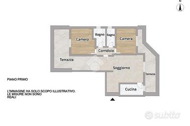 L'ampia metratura e la conformazione del terrazzo a sud predispone l'immobile per la costruzione di una terza camera o un'eventuale ampliamento del soggiorno.
