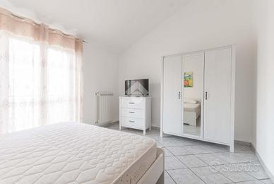 La zona notte comprende due camere matrimoniali e due bagni completi : uno con doccia e uno con vasca; offrendo praticità e comfort per ogni esigenza.