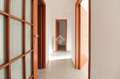 La soluzione disponibile da subito, si compone da ingresso su soggiorno e cucina in ambiente unico, disimpegno, camera matrimoniale, cameretta, ripostiglio, bagno finestrato con vasca e secondo bagno cieco con box doccia.