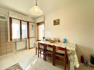 ROSOLINA: Si propone in vendita appartamento trilocale al 2° piano. L'appartamento è composto da ingresso, cucina abitabile, ampio soggiorno luminoso con accesso diretto al poggiolo, due camere da letto matrimoniali , bagno finestrato con box doccia e ripostiglio. Completa la proprietà un comodo garage al piano terra. Abitazione: 90 mq (commerciali) Garage: 14 mq Prezzo: € 90.000,00