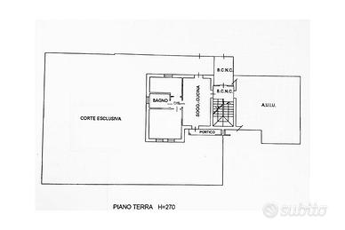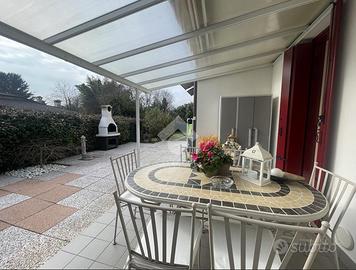 Come spazi esterni si ha un ampio giardino privato di oltre 230mq di cui una parte coperta da un piccolo portico.