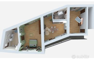 Nel cuore di Rosta, comodo a tutti i servizi, appartamento trilocale al primo e ultimo piano in contesto riservato e di sole quattro unità abitative. L'appartamento dispone di ingresso su soggiorno, bagno, cucina abitabile, disimpegno e camera da letto matrimoniale con bagno en suite completo di vasca idromassaggio data la generosa metratura. Tramite scala interna si accede al piano sottotetto, di medesima metratura e in parte rifinito rendendolo idoneo per essere utilizzato come camera accessoria, studio o altro. Il riscaldamento è a pavimento alimentato da caldaia a metano. L'immobile è attualmente utilizzato come B&B per cui i locali sono stati tutti adibiti a singole camere dotate di bagno, ripristinabile alla disposizione originale o personalizzabile ulteriormente, i render realizzati hanno solo scopo illustrativo e rappresentano la disposizione attuale dell'appartamento, non costituiscono vincolo contrattuale. Possibilità di acquistare a parte un locale di sgombero a scelta di ca. 60 mq, interno cortile, utilizzabile come autorimessa o deposito.