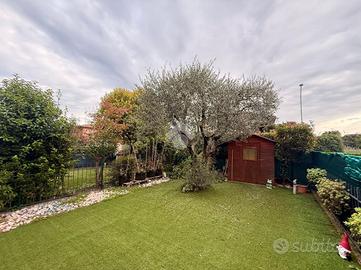 ROVATO PAESE: In tranquillo contesto di trifamiliare proponiamo in esclusiva appartamento trilocale con ingresso indipendente, giardino privato e collegamento interno all'interrato. L'abitazione si apre su una luminosa zona giorno open-space con cucina a vista, che gode di accesso diretto al giardino di generose dimensioni. La zona notte comprende una camera matrimoniale con affaccio su un ampio balcone, una camera singola e un bagno finestrato con vasca. Al piano interrato, collegato internamente, si trova una pratica lavanderia. La proprietà si completa con un box auto doppio in lunghezza e spazi esterni ideali per vivere al meglio la bella stagione.