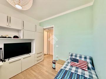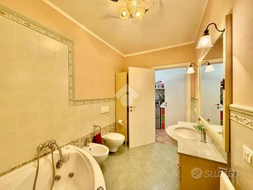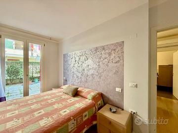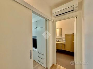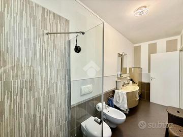 Ingresso su soggiorno con cucina abitabile ed uscita su scoperto privato; disimpengo che porta alla zona notte con camera matrimoniale e bagno finestrato con doccia idromassaggio, camera doppia ed ulteriore bagno con vasca idromassaggio. Aria condizionata.