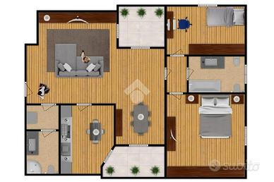 Nel cuore di Quinto Stampi, in contesto signorile, proponiamo appartamento ideale per chi cerca comfort e funzionalità. L'appartamento, con tripla esposizione, si compone da un ingresso direttamente nel soggiorno, dove troviamo due loggiati, cucina abitabile, doppi servizi, disimpegno notte dove troviamo le camere. Completa la soluzione la cantina. La posizione strategica permette di usufruire di tutti i negozi di Piazza Fontana tra cui farmacia, banche, negozi alimentari, posta e da scuole materne e medie e dal Centro Commerciale Fiordaliso. A pochi passi si trova la fermata del Tram 15 che con poche fermate porta direttamente a Milano e alla linea della metro verde di Piazzale Abbiategrasso. SEI INTERESSATO A QUESTO IMMOBILE E NON HAI ANCORA VENDUTO CASA TUA? CHIAMACI TI GUIDEREMO NELLA GESTIONE DELLA PERMUTA! Le planimetrie sono puramente indicative e non rappresentano elemento contrattuale.