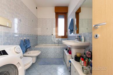 la camera matrimoniale e la cameretta entrambe finestrate, con medesimo affaccio della zona living ed a concludere l'unità il primo bagno padronale, finestrato con vasca in muratura ed il bagno di servizio con box doccia ed aspirazione forzata.