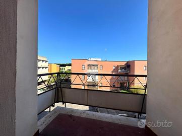 Il luminoso soggiorno, affaccia su un balcone che permette di godere della vista del centro della città di Sabaudia, offrendo uno spazio ideale per momenti di relax o socializzazione all'aperto, la cucina separata è dotata di un proprio balcone.