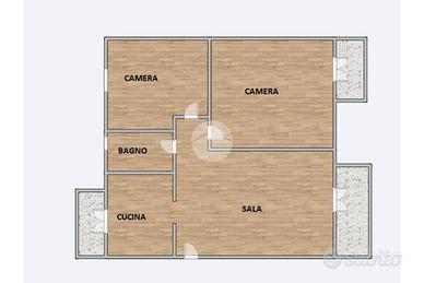 La soluzione proposta gode di un' ottima esposizione solare ed è composta da un luminoso soggiorno con cucina separata e doppio balcone, un bagno con box doccia e finestra e due camere matrimoniali di cui una con terzo balcone.