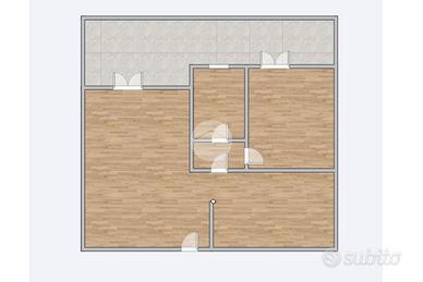 La soluzione si compone da soggiorno open space con angolo cottura e accesso diretto al balcone vivibile atrezzato.