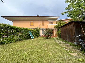 Situato al piano terra, questo appartamento offre un confortevole spazio abitativo con un giardino privato, ideale per momenti di relax e convivialità all'aperto.