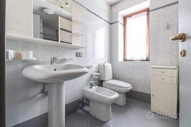 Attraverso un comodo disimpegno si accede alla parte più riservata dell'abitazione, dove trovano posto due camere da letto accoglienti e un bagno finestrato completo di box doccia e vasca.