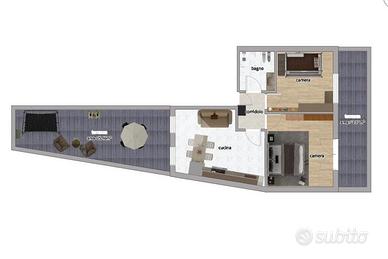 Situato al quarto ed ultimo piano, l'appartamento regala spazi luminosi e accoglienti: dall'ingresso si accede a un soggiorno con cucina a vista che unisce stile e funzionalità, due camere da letto garantiscono comfort e privacy, mentre il bagno, di nuova realizzazione, si distingue per design e qualità.