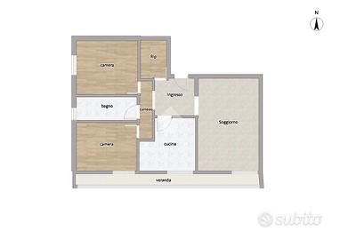 L'ingresso conduce a un pratico disimpegno che introduce nella zona giorno, composta da un soggiorno accogliente con angolo pranzo e da una cucina abitabile, spaziosa e funzionale, ideale per chi ama vivere al meglio gli spazi domestici. La zona notte è formata da due ampie camere matrimoniali, un bagno e un comodo ripostiglio.