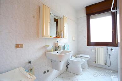 Il bagno si presenta con una comoda finestra e un'ampia doccia.