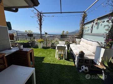 Nel cuore della suggestiva area collinare di Ogliara, a breve distanza dal centro di Salerno, sorge una residenza di rara eleganza, realizzata nel 2014 e inserita in un contesto intimo e riservato. Posto al primo piano di un raffinato fabbricato di poche unità, l'immobile si distingue per ambienti armoniosi e sapientemente distribuiti: un'ampia zona living con cucina a vista, luminosa e accogliente, si apre come fulcro della casa, mentre la zona notte offre due camere da letto e doppi servizi, di cui uno en suite, pensati per garantire massimo comfort e privacy. Le finiture, di alto livello, esprimono una cura meticolosa per ogni dettaglio, conferendo agli spazi un'eleganza contemporanea e senza tempo. La luce naturale, protagonista indiscussa, avvolge ogni ambiente esaltandone volumi e materiali. Fiore all'occhiello della proprietà è il magnifico terrazzo a livello: un autentico salotto all'aperto con vista incantevole sul Golfo di Salerno, luogo ideale per momenti esclusivi di relax, tra cieli infiniti e tramonti spettacolari. Una dimora pensata per chi ricerca un'esperienza abitativa di pregio, dove la tranquillità della natura incontra il comfort e la bellezza del paesaggio mediterraneo.