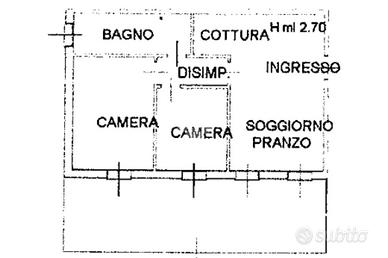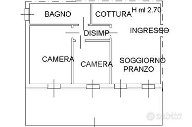 L'immobile, sviluppato in un unico livello, presenta all'ingresso la zona giorno, composta da cucina e soggiorno open space. Passando alla zona notte tramite disimpegno, scopriamo due camere da letto, una singola e una matrimoniale ed un bagno con vasca.