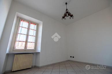 SALUZZO in Via Monviso, zona centrale, appartamento al piano primo. L'ingresso avviene sul disimpegno il quale collega tutte le stanza dell'abitazione. La zona giorno è caratterizzata da un soggiorno e una cucina abitabile con uscita esterna su balcone. Camera da letto matrimoniale. Bagno completo di box doccia. Serramenti doppio vetro e persiane sostituite recentemente. Completa la proprietà una legnaia di pertinenza.