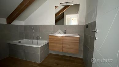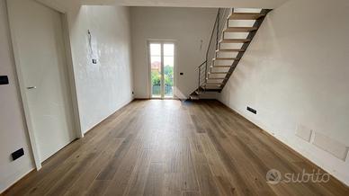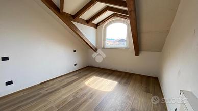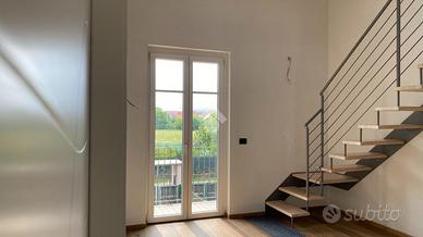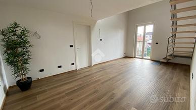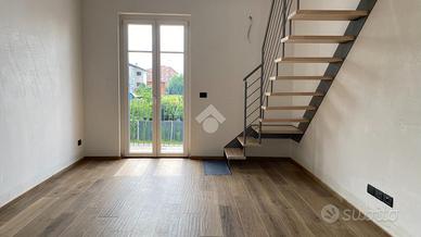 SALUZZO in fabbricato recentemente costruito a seguito di demolizione e ricostruzione a nuovo, alloggio su due livelli. La zona giorno living è composta da soggiorno e angolo cottura con sfogo esterno. La zona notte è caratterizzata da due camere da letto di cui una singola e una matrimoniale. L'appartamento è servito da due bagni, uno per piano. Autorimessa con cantina. Riscaldamento a pavimento.