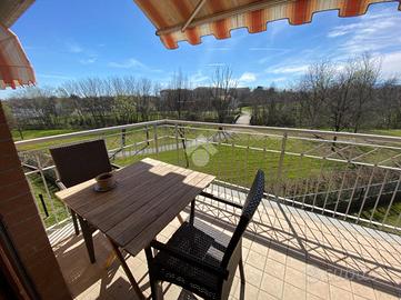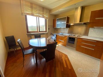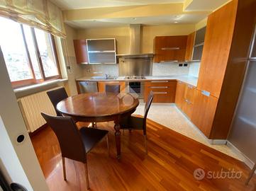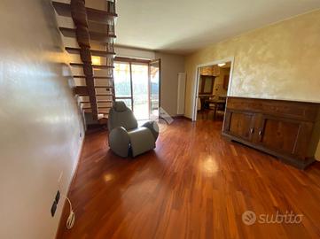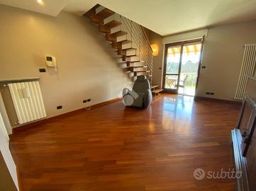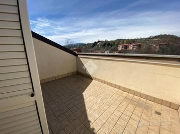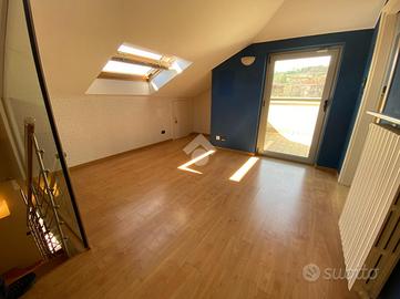 SALUZZO in via Trieste, appartamento al secondo piano in stabile recente dotato di ascensore. Formato da ingresso sull'ampio soggiorno, cucina abitabile, disimpegno, bagno con vasca, camera da letto matrimoniale. Tramite la scala in legno si accede al piano superiore formato da un locale aggiuntivo utilizzabile come cameretta o studio e un secondo bagno. Tre ripostigli di pertinenza. Uscita esterna su tre terrazzi. L'immobile viene locato parzialmente arredato come da fotografie ed è disponibile da subito. Cantina e garage che completano la proprietà.