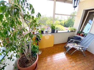 L'abitazione con esposizione soleggiata, Est - Sud - Ovest, è composta da un soggiorno doppio, con area pranzo e zona relax, servito da balcone con affaccio ad Est, mentre la cucina abitabile è dotata di un terrazzino verandato, ideale per cene all'aperto in estate.