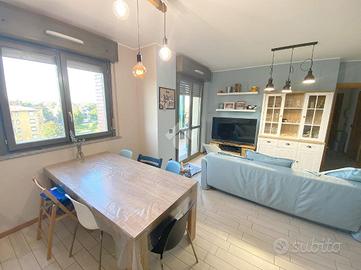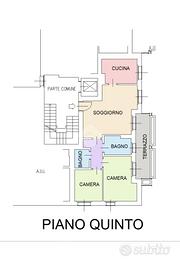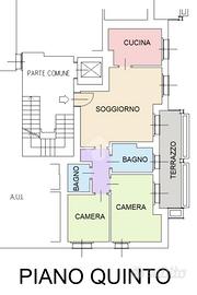 Panoramico appartamento posto al quinto e ultimo piano, servito da ascensore, di tre locali e doppi servizi di 90 mq. circa, comodo e funzionale, libero su tre lati con doppia esposizione.