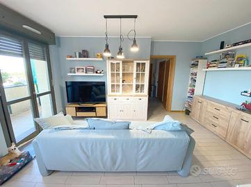 L'appartamento di recente costruzione si presenta in ottime condizioni, è composto da un comodo soggiorno con zona living e pranzo servito da ampia balconata coperta e una cucina separata. Il disimpegno separa la zona notte dove sono presenti una camera matrimoniale con accesso alla balconata, una seconda camera, un ripostiglio, un bagno completo con doccia ed un secondo bagno ad uso lavanderia.