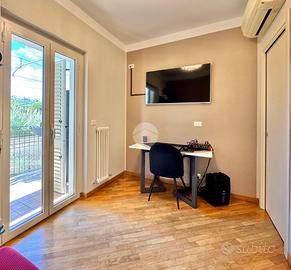 Un disimpegno conduce alla zona notte, composta da una camera matrimoniale e un' altra stanza, perfette per una famiglia o per ospiti. Il bagno è finestrato, garantendo luce naturale e ventilazione. L'appartamento dispone di due ampi terrazzi: uno esposto a SUD-EST con accesso dal soggiorno, l'altro ad OVEST accessibile da entrambe le camere, ideale per godersi il tramonto. Gli infissi sono in doppio vetro garantendo un clima ottimale in ogni stagione Questa soluzione abitativa rappresenta un'opportunità per chi cerca comfort e vicinanza al mare.