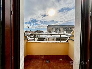 L'ingresso si apre su un luminoso soggiorno con accesso al balcone, dove trova spazio anche la cucina, creando un ambiente pratico e conviviale. Un disimpegno conduce alla camera singola, perfetta come studio o stanza ospiti, e alla camera matrimoniale, anch'essa con uscita sul balcone. Completa la zona notte un bagno finestrato dotato di vasca.