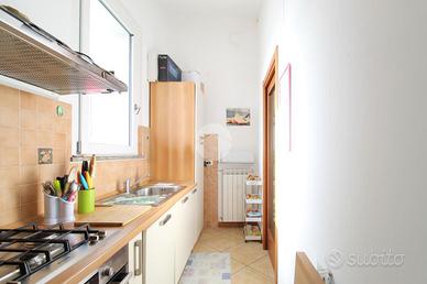 L'immobile, sito all'ultimo piano con ascensore, si compone di ingresso su zona living con angolo cottura separato. Tramite disimpegno si accede alla zona notte e troviamo una camera da letto matrimoniale, cameretta e servizio finestrato con doccia e vasca idromassaggio.