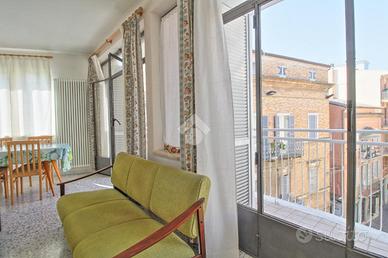 La palazzina, priva di ascensore, si presenta in ottimo stato esterno ed offre un ingresso diretto sull'isola pedonale, garantendo un accesso privilegiato ai servizi e alle attrazioni del centro cittadino. Internamente l'appartamento si compone di ingresso, ampio soggiorno, cucina a vista, camera matrimoniale, cameretta, bagno con finestra, balcone a ovest con suggestivo affaccio su via XX Settembre, due piccoli balconi a nord e sud. L'appartamento oggetto di parziale ristrutturazione nel 2002 gode di una splendida luminosità e si presenta in buono stato interno, dotato di tutti i comfort, quali aria condizionata, riscaldamento autonomo, rivestimenti in ceramica, pavimentazione in graniglia.