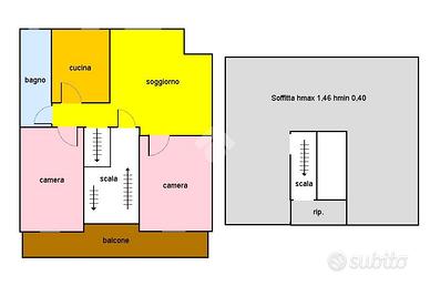 Riepilogo dimensioni immobile: appartamento 76 mq ca, balcone 9 mq ca, soffitta 70 mq ca con altezza max 1,46 mt