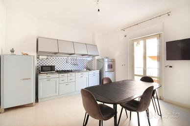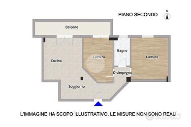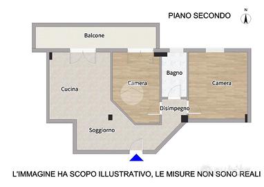 L'immobile si apre su un luminoso soggiorno con cucina a vista; un comodo disimpegno conduce alla zona notte, composta da camera matrimoniale, camera doppia e bagno finestrato con box doccia.