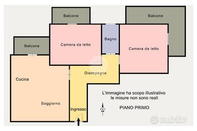 La soluzione si compone di ingresso, soggiorno con cucina a vista, due camere da letto matrimoniali e bagno finestrato con vasca.